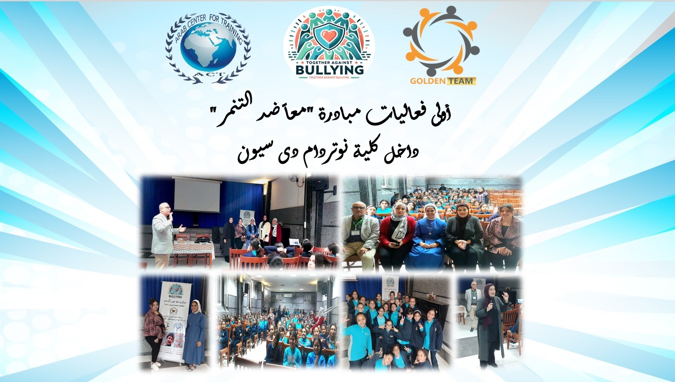 “بكل فخر ونجاح، تم تنفيذ أولى فعاليات مبادرة “معًا ضد التنمر” داخل كلية نوتردام دي سيون مع طلاب الصف الثالث الابتدائي في القسمين العربي والفرنسي، والتي أطلقها المركز العربي للتدريب بالتعاون مع شركة جولدن تيم لتنظيم المؤتمرات.